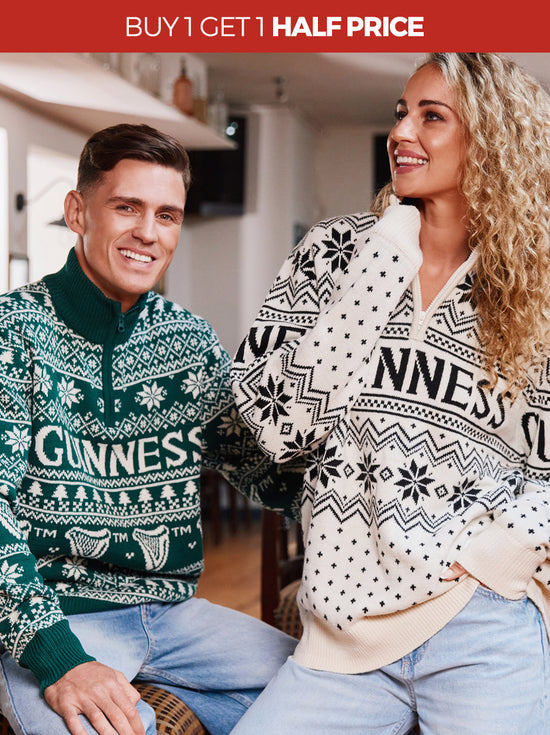Guinness Crew Neck Harp Sleeve Knit Jumper Green