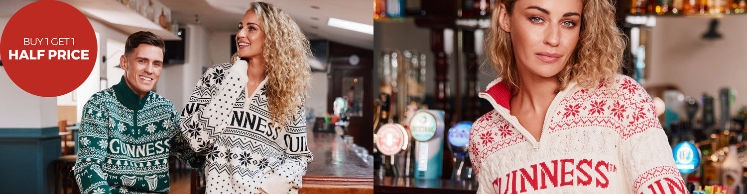 Guinness Men's Knit Sweater With White Guinness Text Bottle Green