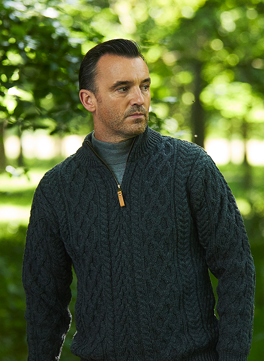 Men's Half-zipped Aran Jacquard Celtic Sweater
