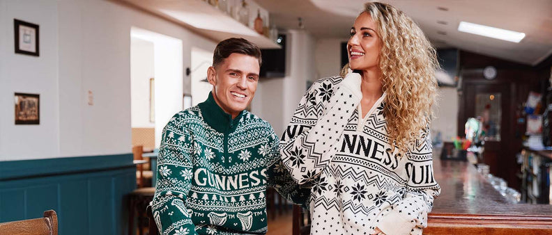 Guinness 1/4 Zip Festive Green Christmas Sweater