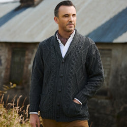 Men's Aran Zip Charcoal Cardigan