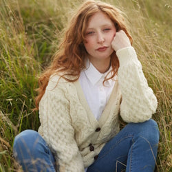 Women's Streedagh Scallop Lace Stitch Natural Aran Sweater