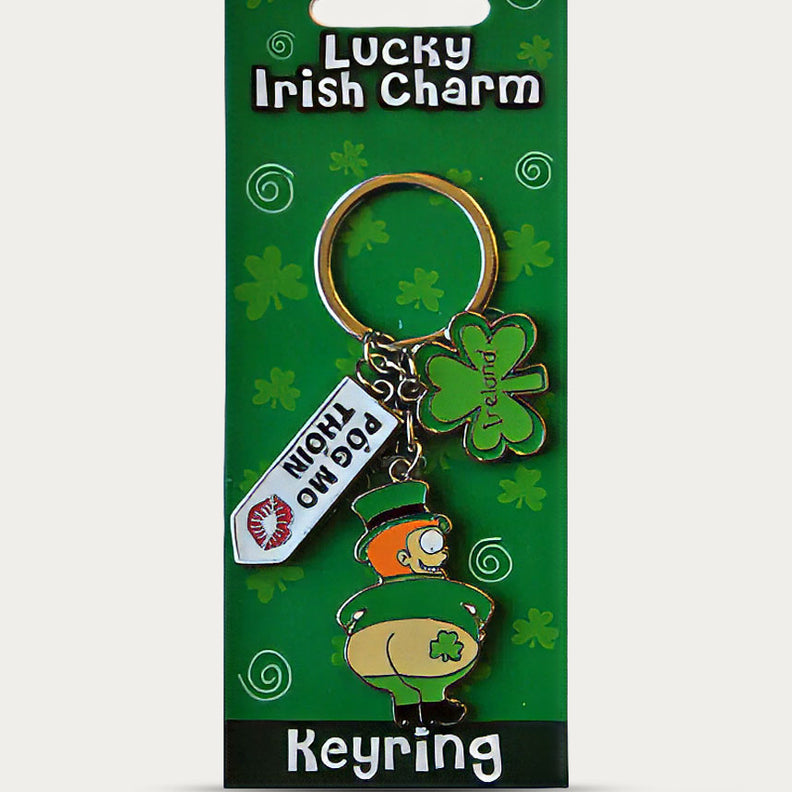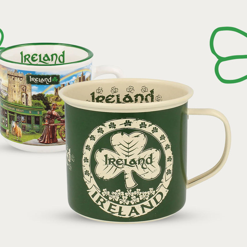Antique Magnet Of Large Shamrock & Gold Ireland Text & Small Shamrock Design