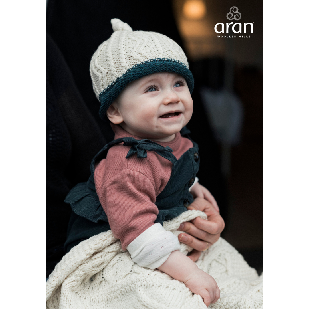 This hats is an adorable addition to a baby's wardrobe. It was crafted by Aran Woollen Mills an authentic Irish company founded in 1965. Their designs are inspired by the stunning Irish scenery and knitting heritage. The little hat features a Fisherman's cable knit which represents safety and good fortune. The fine wool that it is made from is both warm and lightweight. This special hat is the perfect way to keep your little one cozy and snug whilst looking adorable!