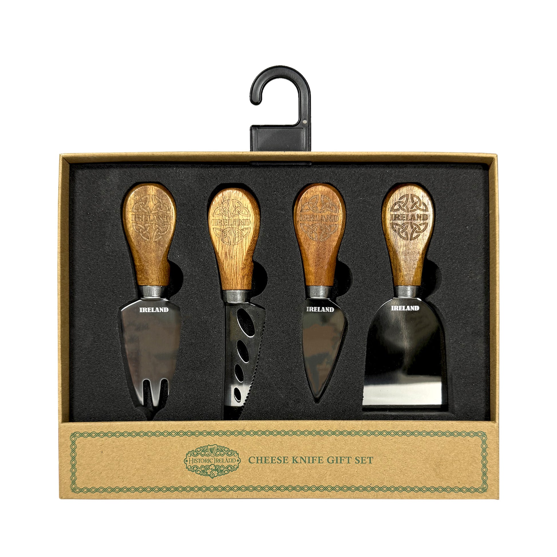 This Celtic Knot Cheese Knife Set brings a touch of Irish design to your dining table. Each knife features a Celtic knot handle design. Perfect for serving cheeses in style. Suitable for gifting or entertaining.