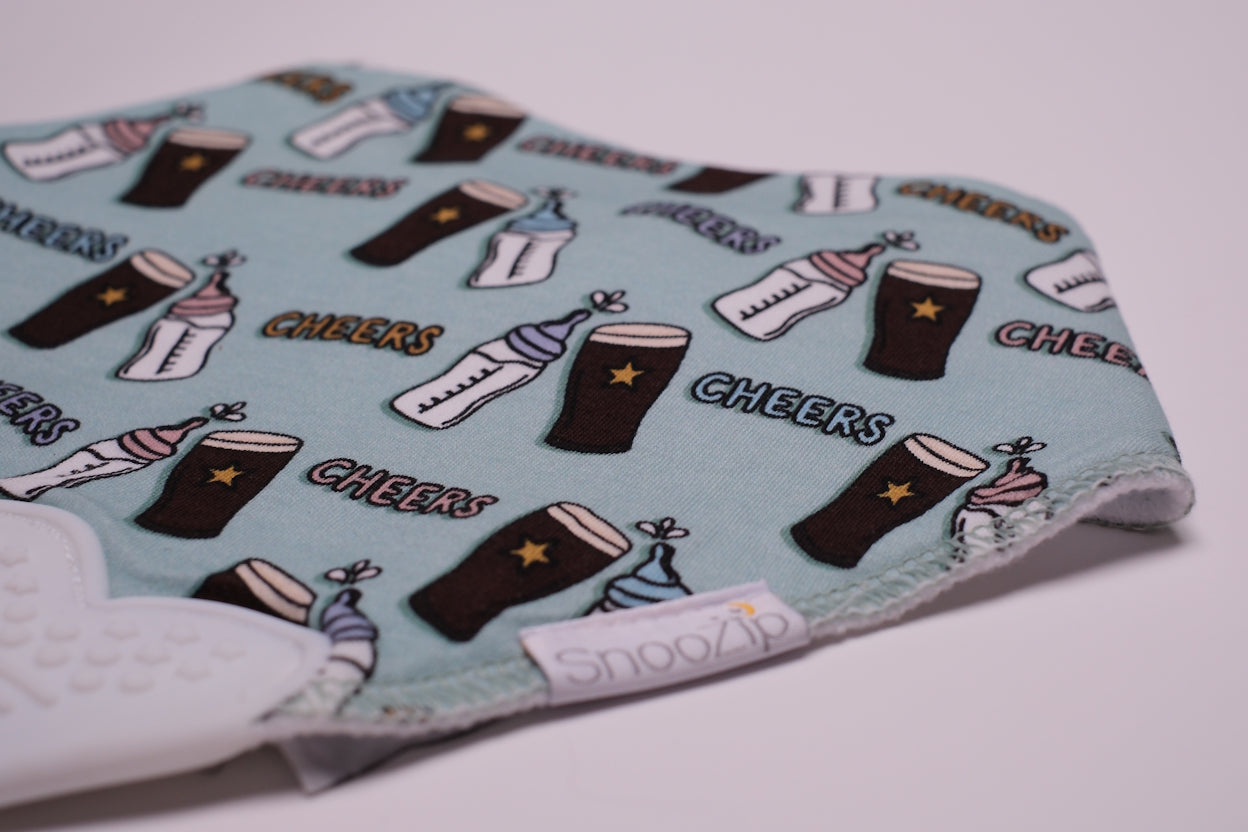 Say “cheers” to less mess and happier teething with the Cheers Teething Bib by SnooZip the perfect mix of fun, function, and Irish wit. Made from ultra-soft 100% organic cotton with a super absorbent fleece backing, this bib keeps dribbles at bay while keeping your little one comfy and dry.