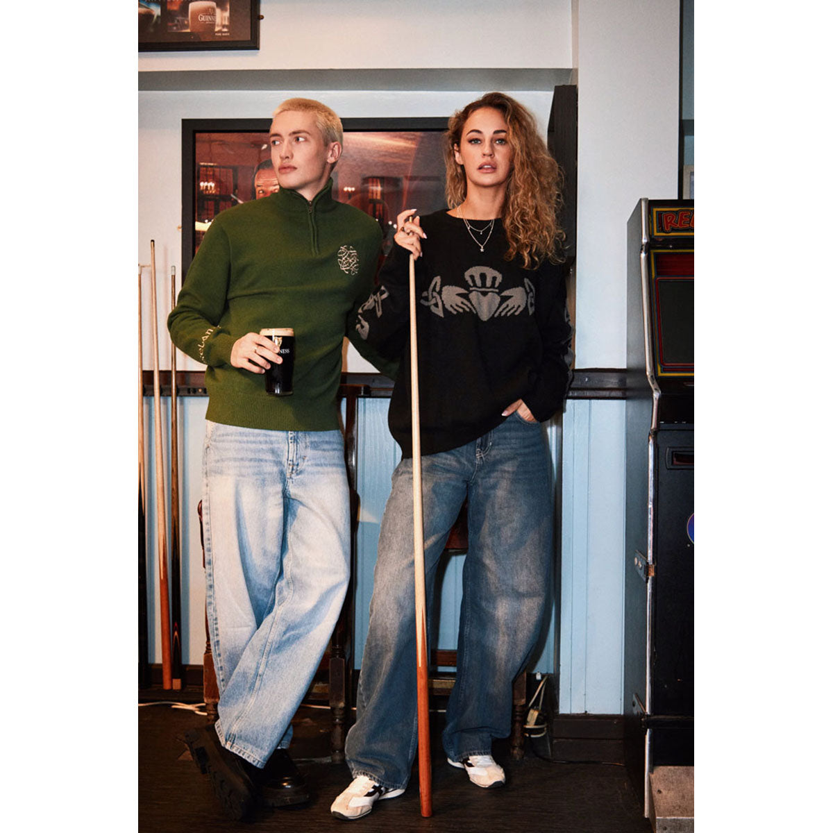 This Claddagh crew neck jumper in black and grey presents a timeless colour combination inspired by heritage styling. The Claddagh symbol represents love, loyalty and friendship, adding deeper cultural meaning to a comfortable everyday knit piece.