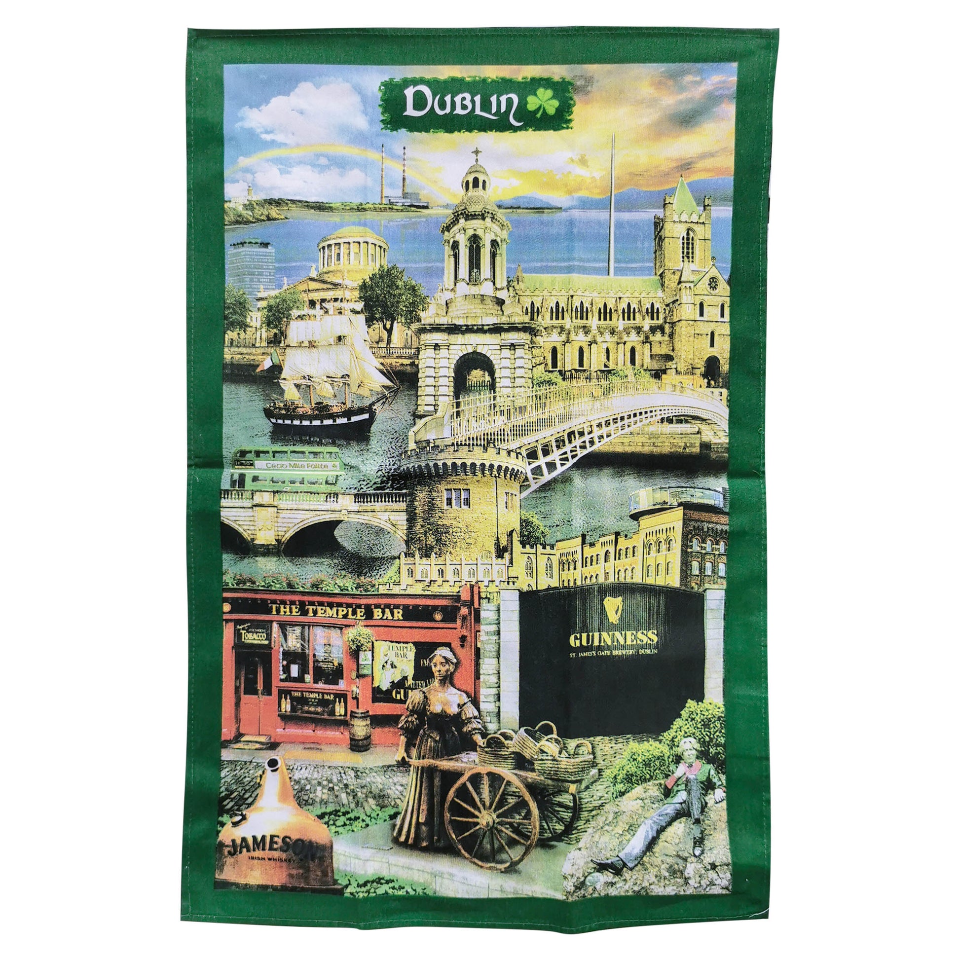 This tea towel is designed with some of the most stunning landmarks in Dublin. A great way to be reminded of a recent visit. The iconic landmarks include St. James's gate, The Temple Bar pub, Molly Malone Statue, Ha'penny Bridge and the historic Dublin Castle. A prefect gift for anyone that is missing home!