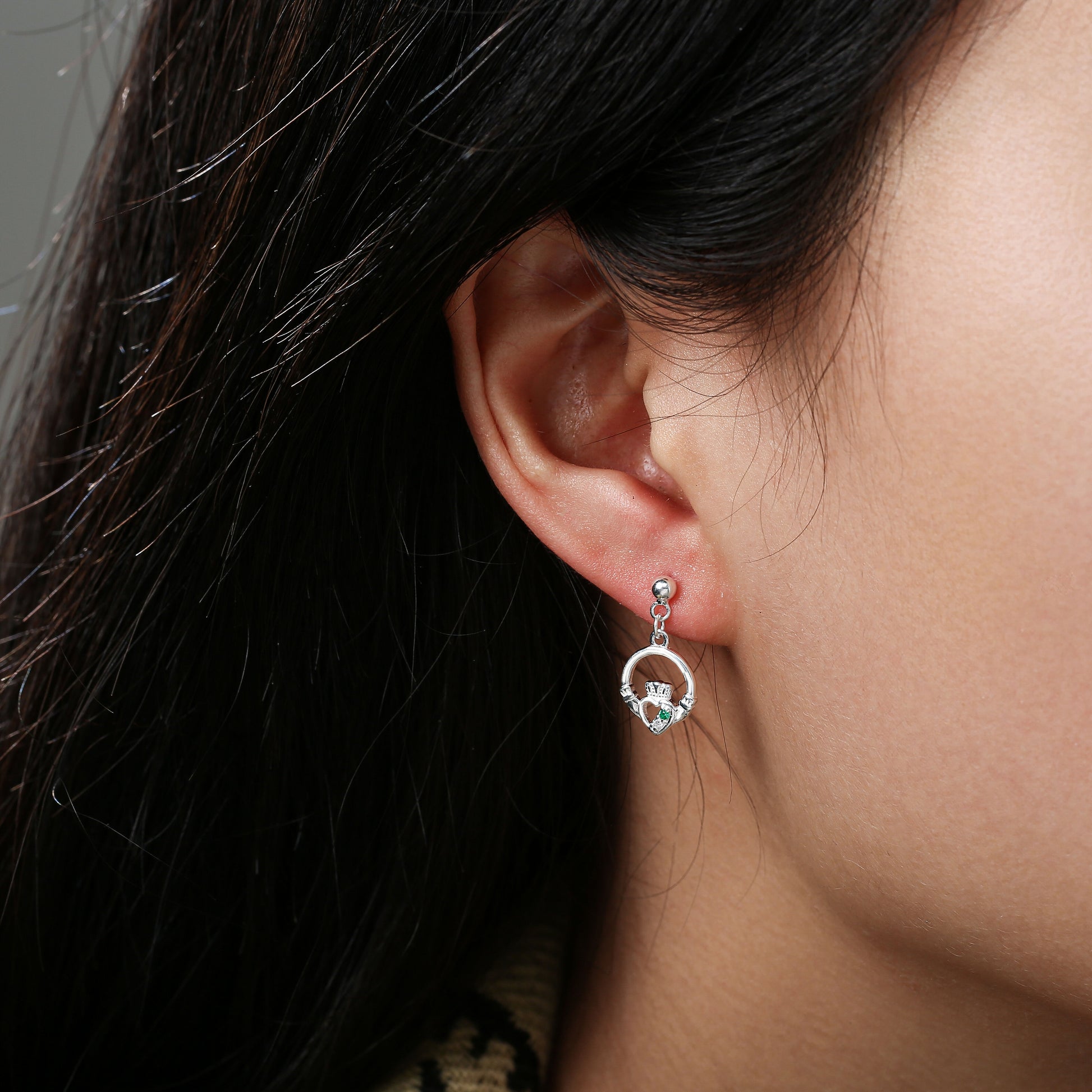 Grá Collection Claddagh Green Stones Earrings Sterling SilverCouldn't load pickup availability