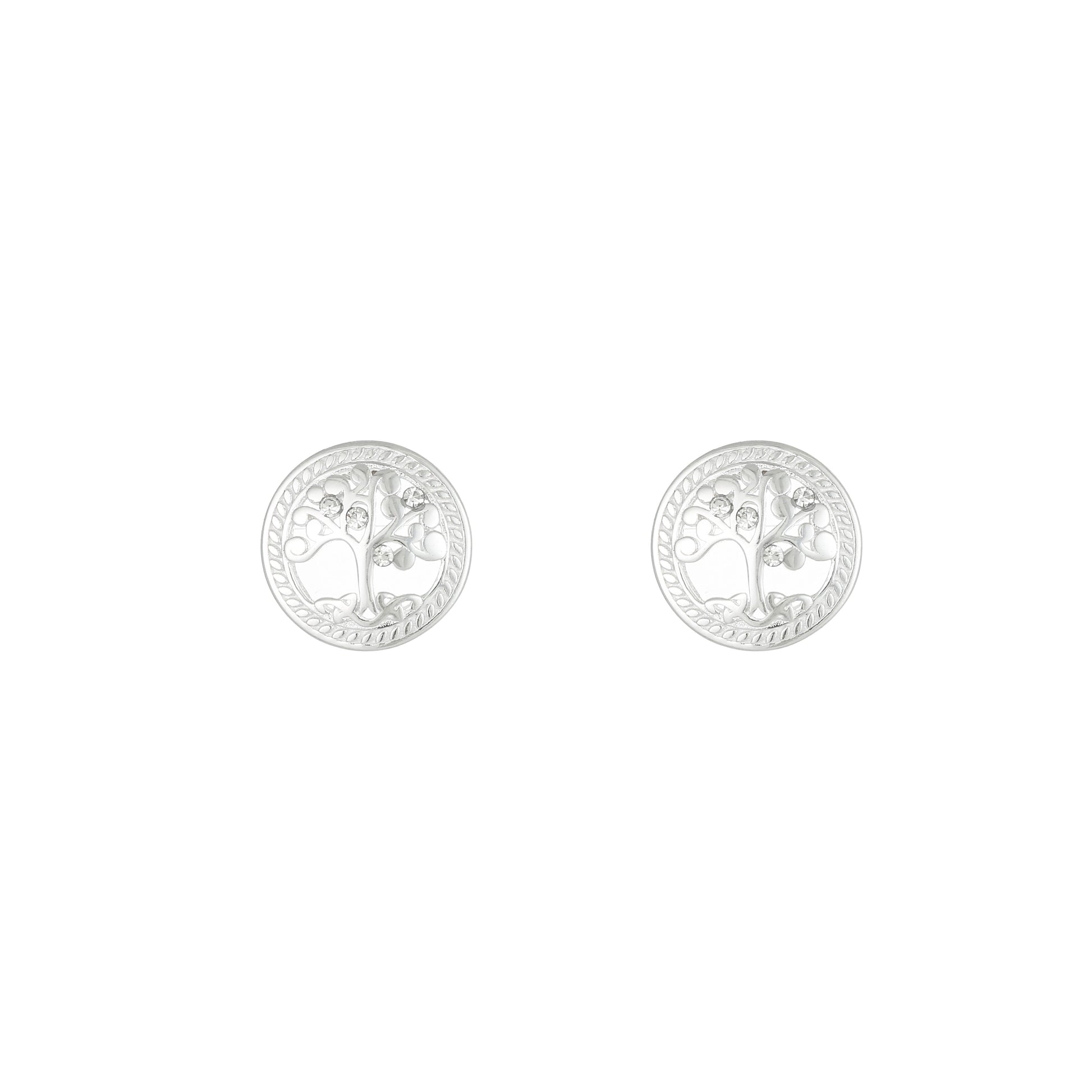 Grá Collection Tree Of Life Green Border Earrings Sterling Silver