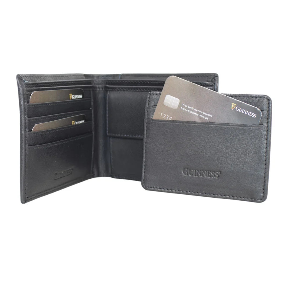 Crafted from premium full-grain black leather, this official Guinness bifold wallet blends timeless style with everyday functionality. Designed for Guinness fans who value quality, it offers superior durability and a smooth, soft feel that elevates your daily essentials. This wallet combines the trusted quality of the Guinness brand with modern security features and sleek design, ideal for anyone who enjoys tradition with a practical edge.