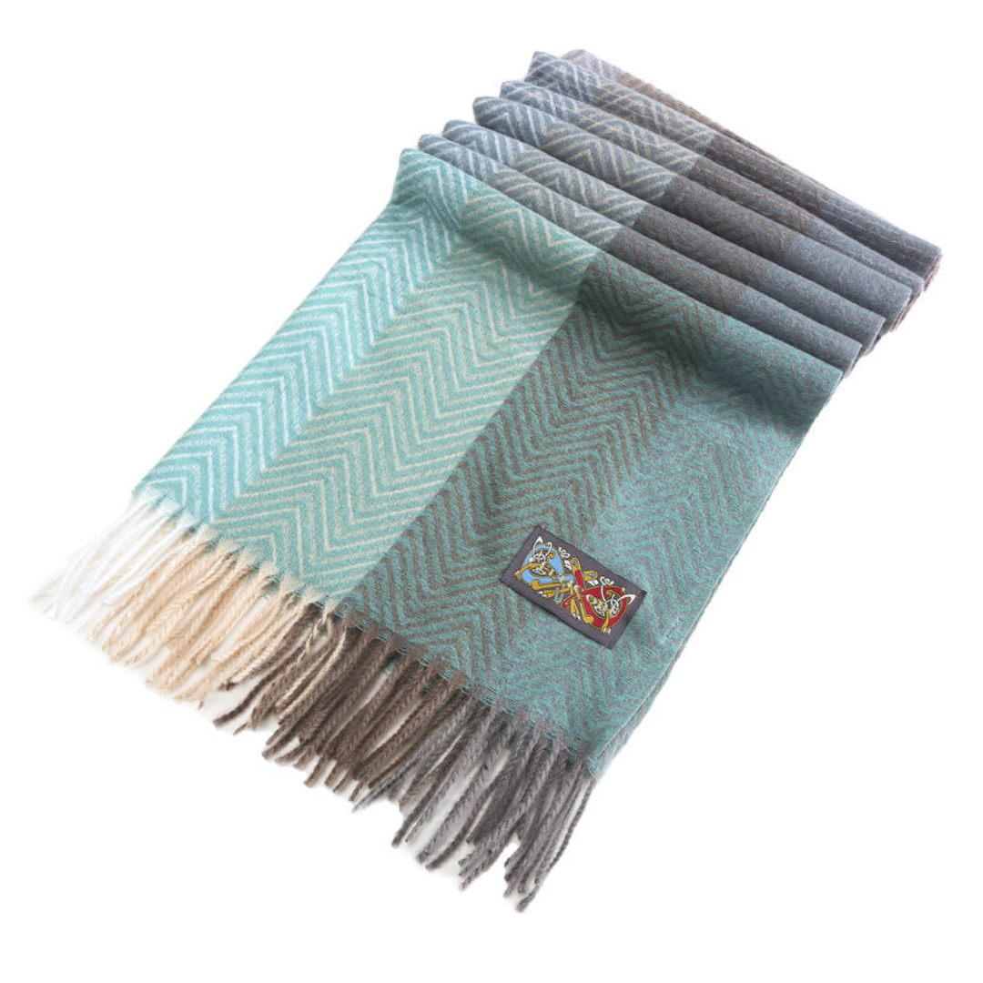 Herringbone Frailed End Scarf Mix TealsCouldn't load pickup availability