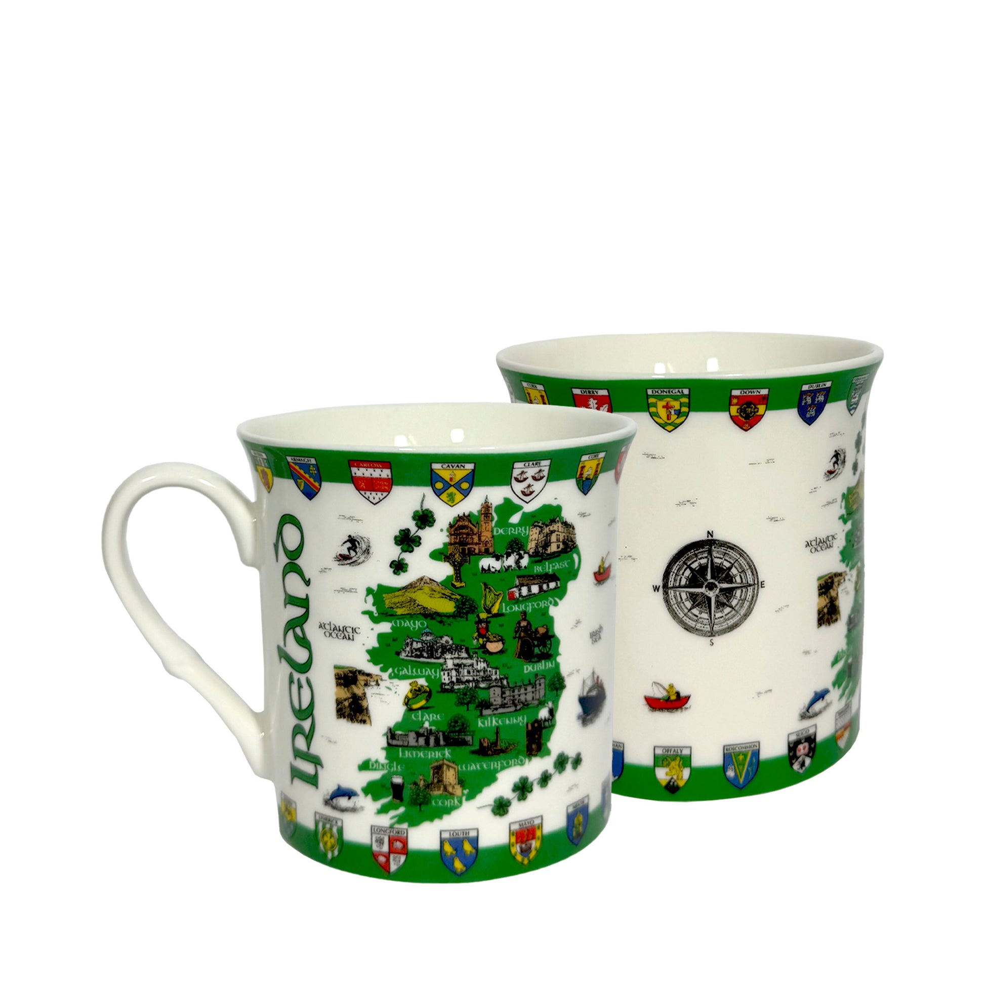 Celebrate the rich heritage of Ireland with this beautifully detailed Ireland Map & County Shields Regal Mug. Featuring a vibrant full-color map of Ireland surrounded by all 32 county shields, this ceramic mug is both a functional and decorative tribute to the Emerald Isle. Whether you're sipping tea or coffee, this mug is a proud reminder of Irish roots and culture, a perfect gift or souvenir for any Irish enthusiast.