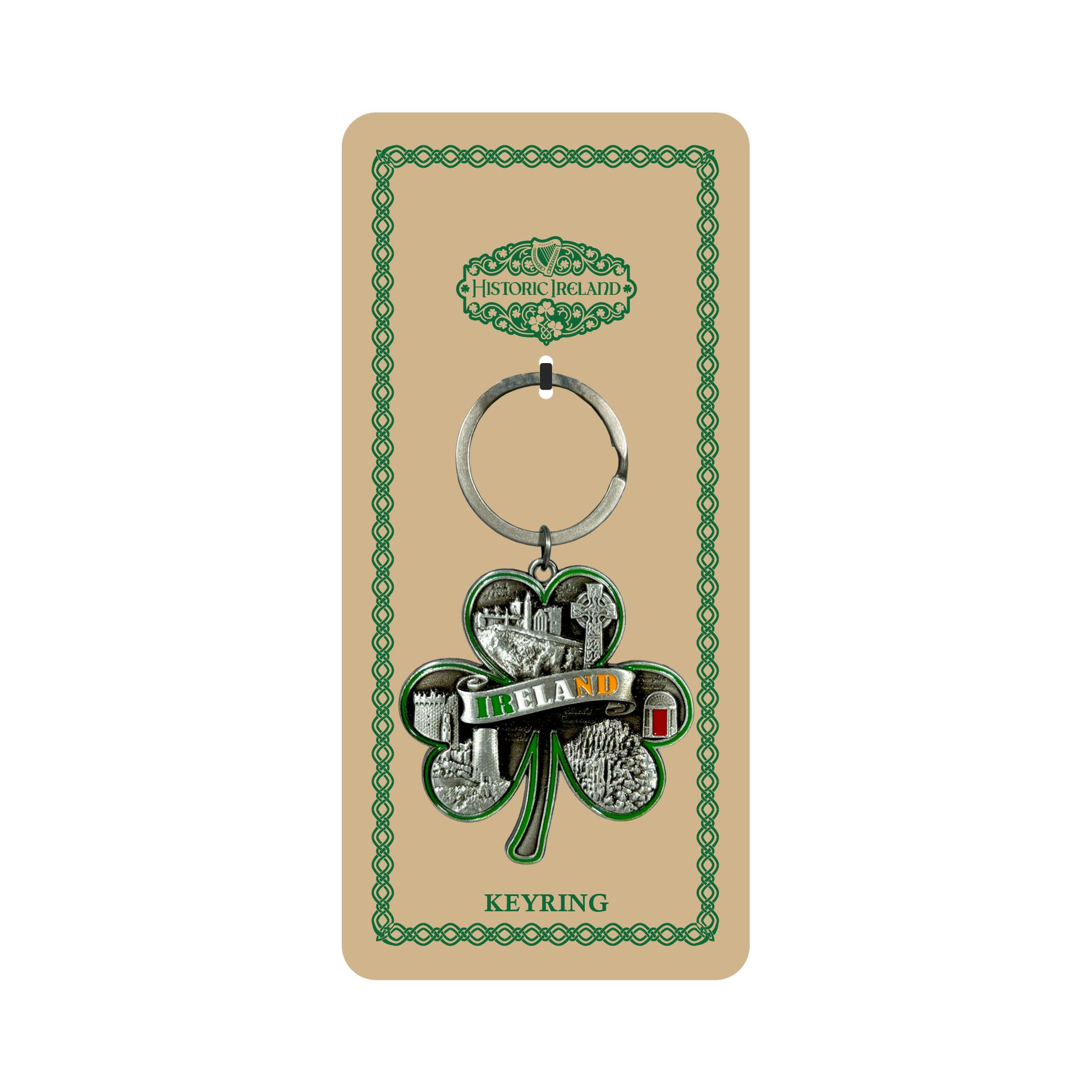 Ireland Shamrock Shaped Metal KeyringCouldn't load pickup availability