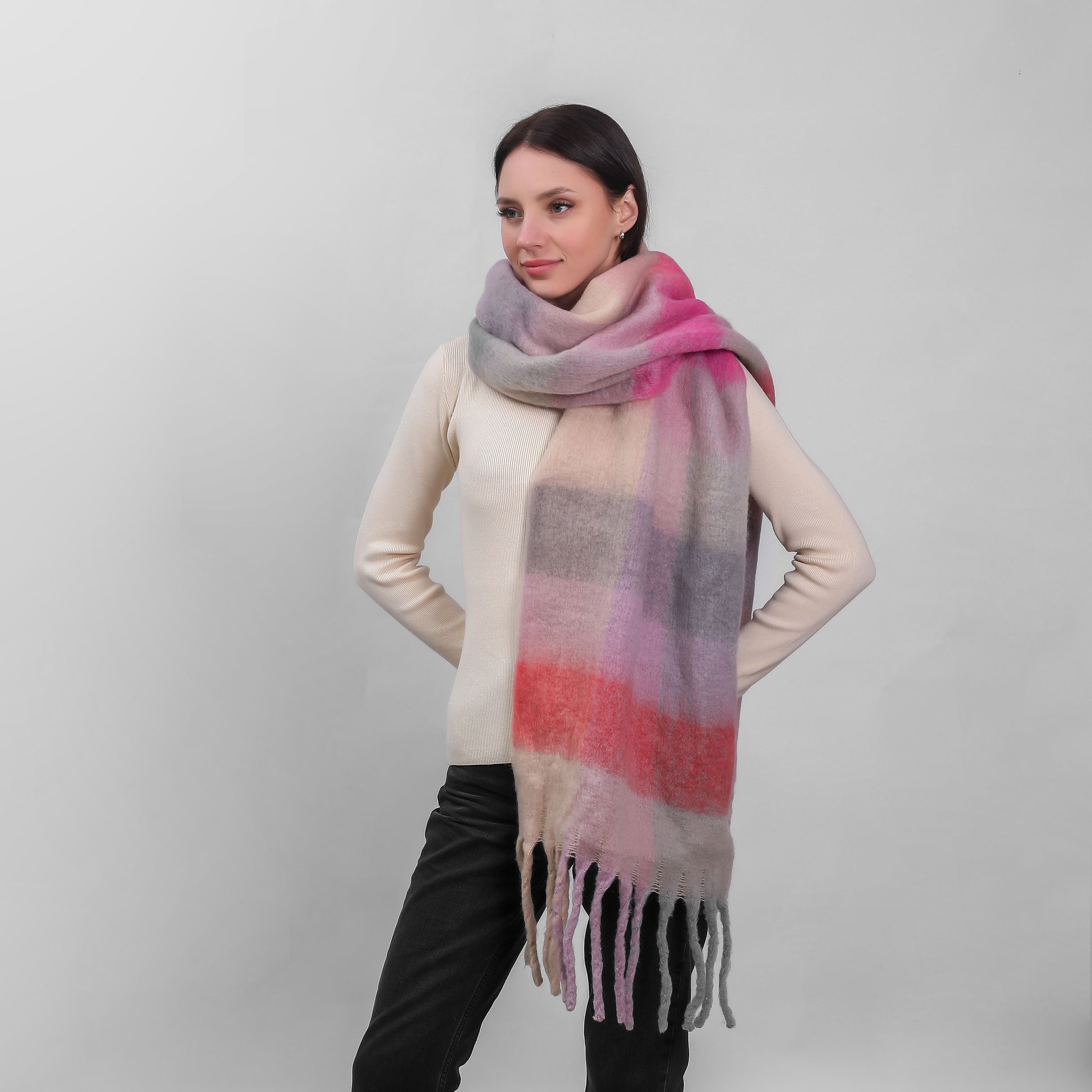 Irish Soft Check Scarf Pink