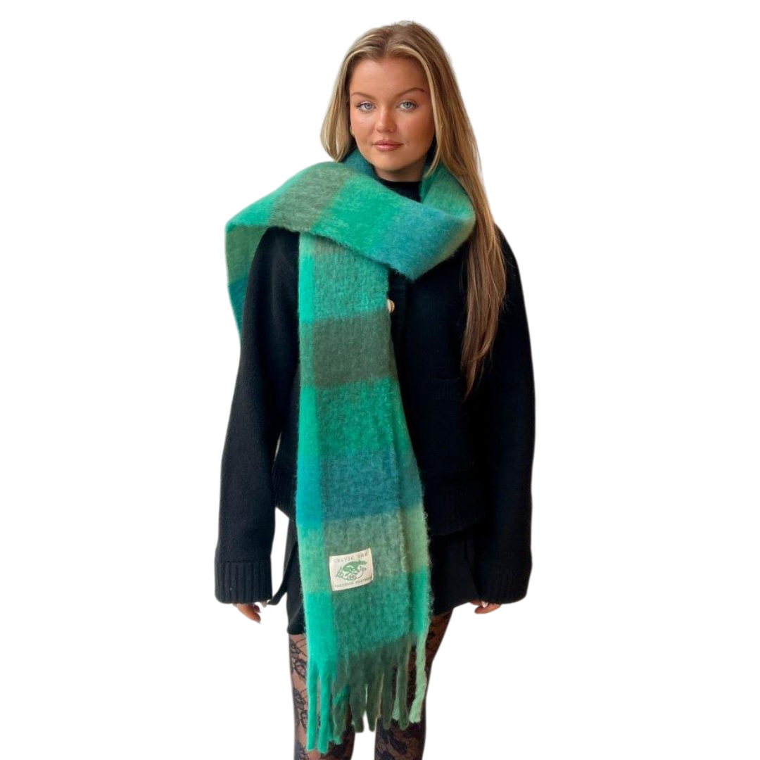 Wrap yourself in warmth and style with our Check Scarf in Mixed teal shades. This chunky scarf is designed to keep you cozy during chilly days while adding a pop of classic Irish charm to your outfit. Featuring a timeless check pattern in vibrant teal tones and frailed ends, it's the perfect blend of comfort and fashion.