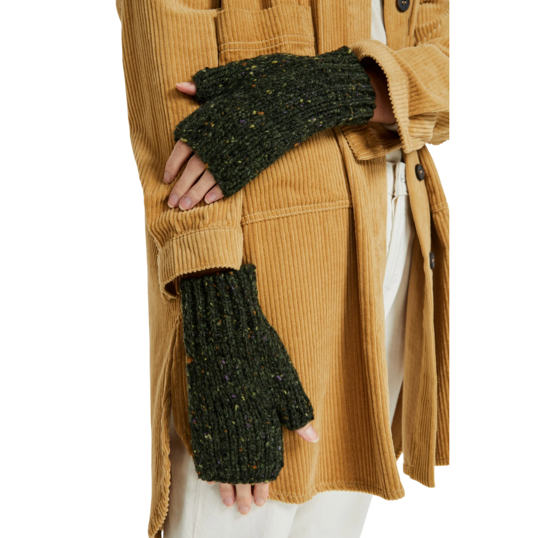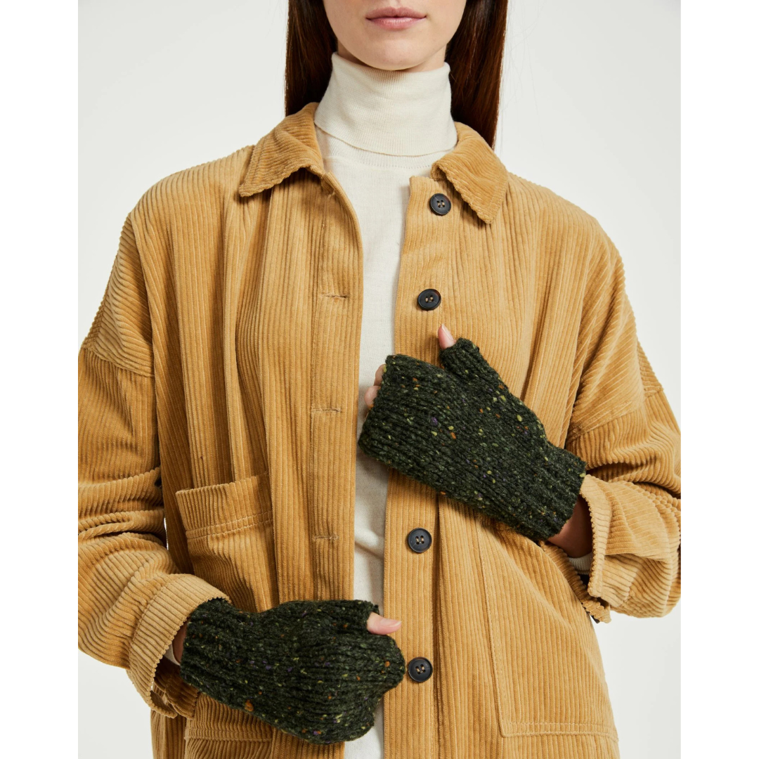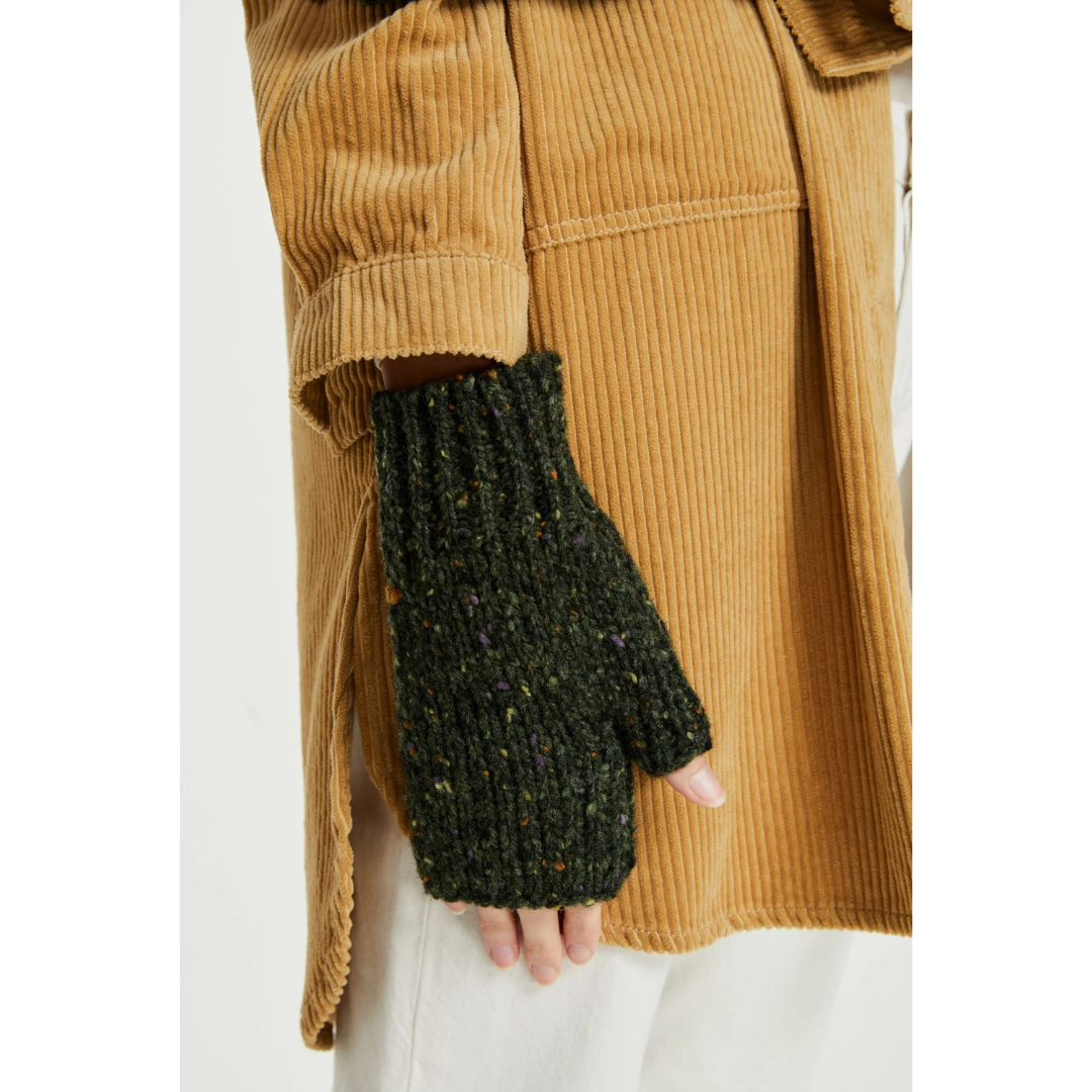 Ladies Nepped Wool Army Green Fingerless Mittens