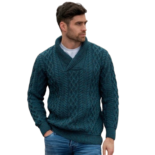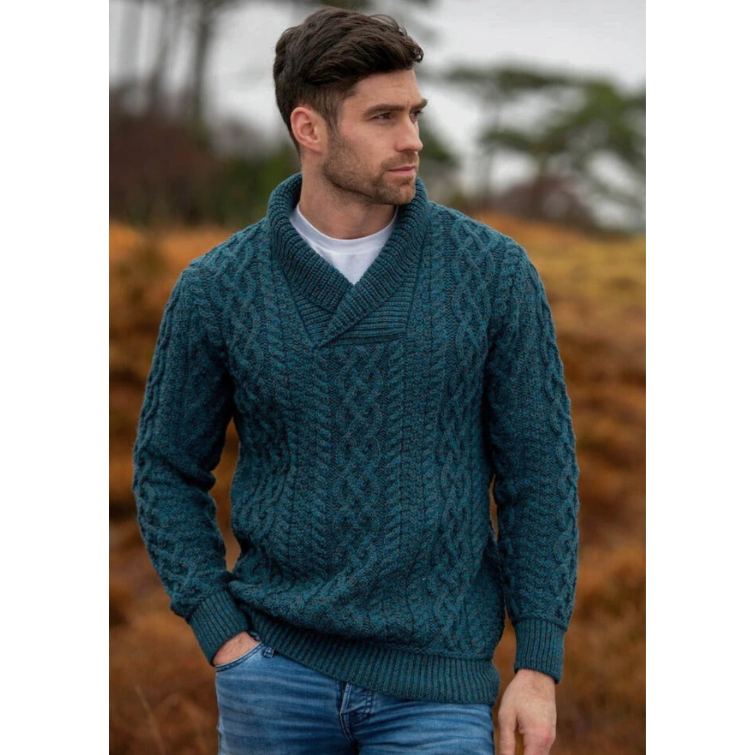 Men's Bunratty Shawl Collar Aran Sweater Peacock