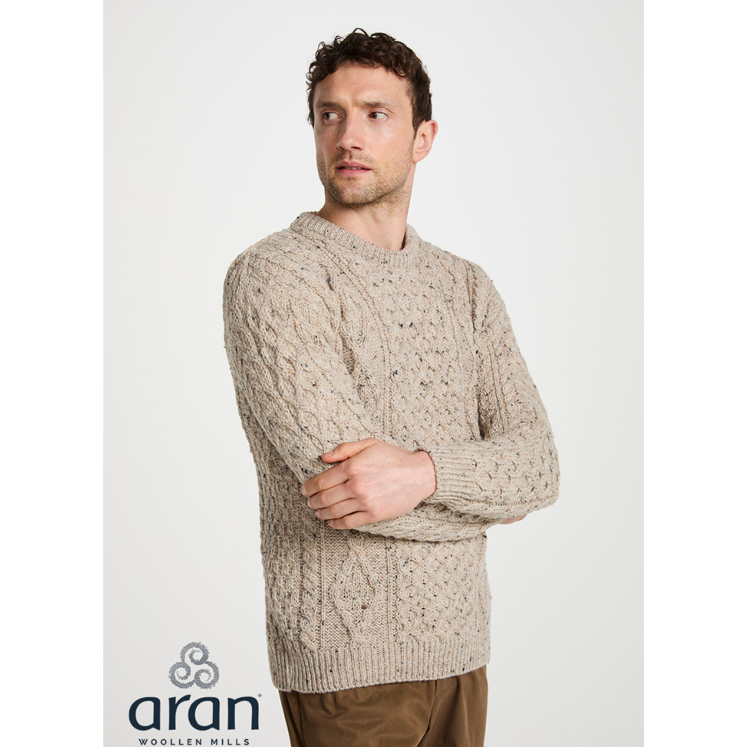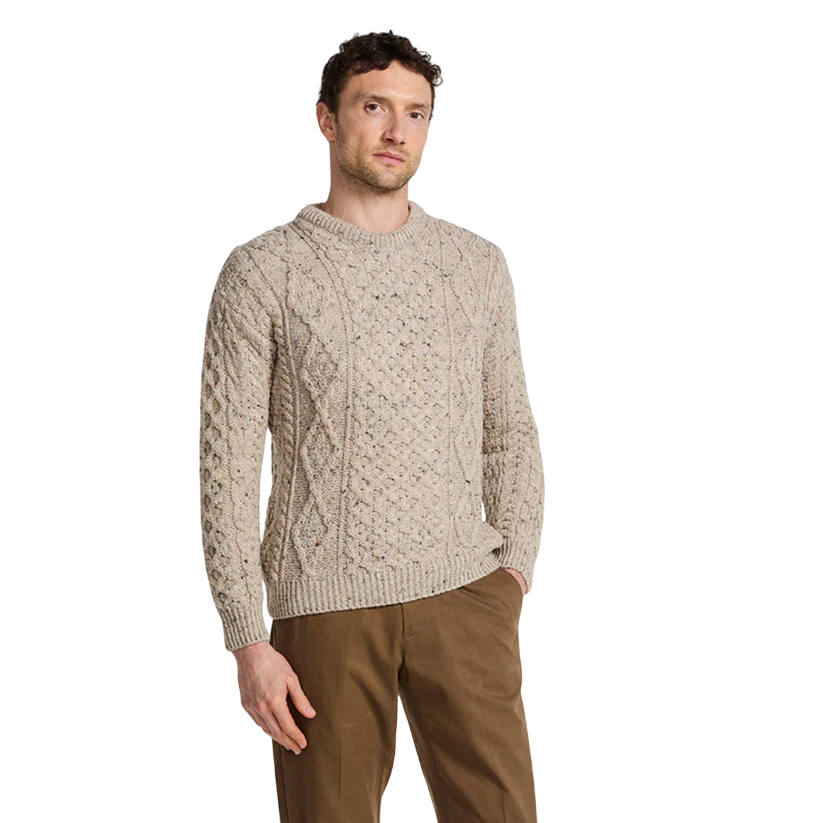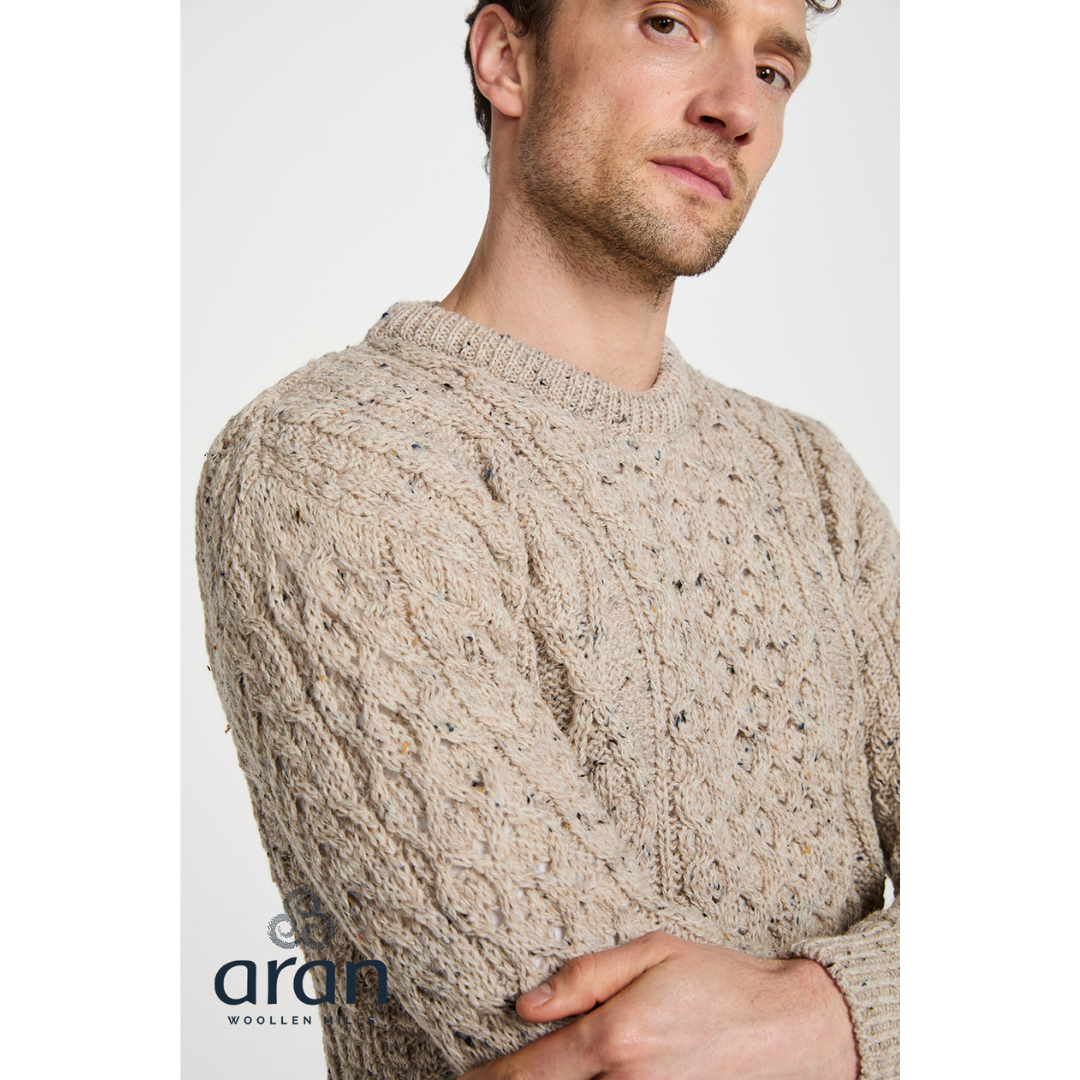 Men's Crewneck Worsted Aran Wool Oatmeal Fleck Jumper