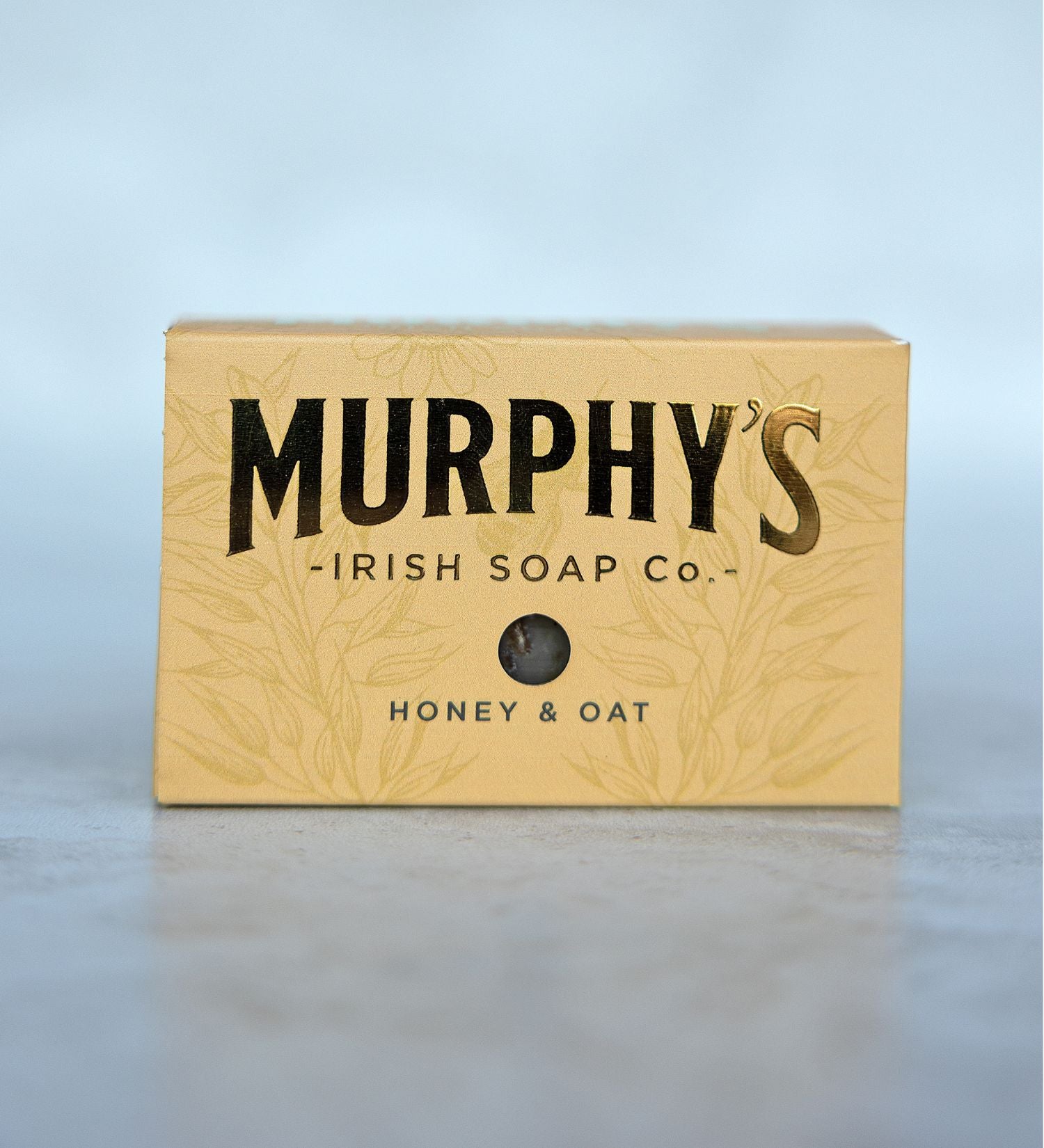 Crafted in the traditional cold process way; expertly handmade in Co. Wicklow, this Honey and Oat Soap from Murphy's is a great addition to your skincare routine. Made with only natural, nourishing ingredients Olive Oil, Coconut Oil, and Shea Butter as the base along with locally sourced ingredients to ensure a high-quality product. Honey naturally moisturizes and heals, while oats provide gentle exfoliation, making this soap ideal for sensitive skin.
