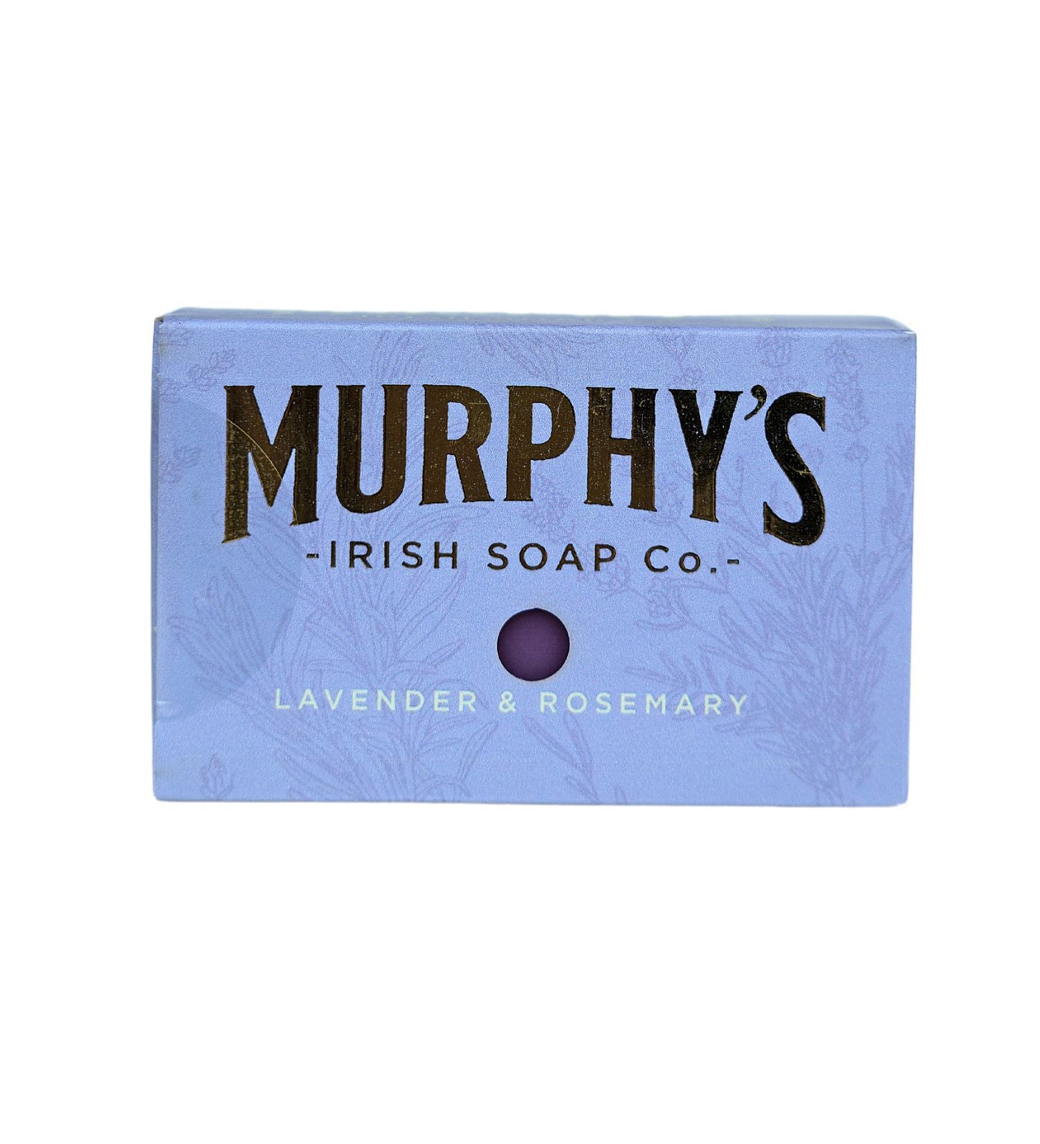 Crafted in the traditional cold process way; expertly handmade in Co. Wicklow, this Lavender & Rosemary soap from Murphy's is a great addition to your skincare routine. Made with only natural, nourishing ingredients Olive Oil, Coconut Oil, and Shea Butter as the base along with locally sourced ingredients to ensure a high-quality product. Calming relaxing lavender paired with Rosemary, with it’s antibacterial and toning properties works as soothing soap, perfect for those with skin conditions.