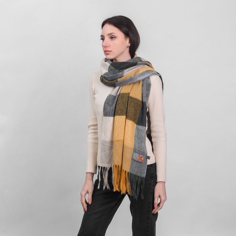 Patchwork Frailed End Scarf GreyCouldn't load pickup availability