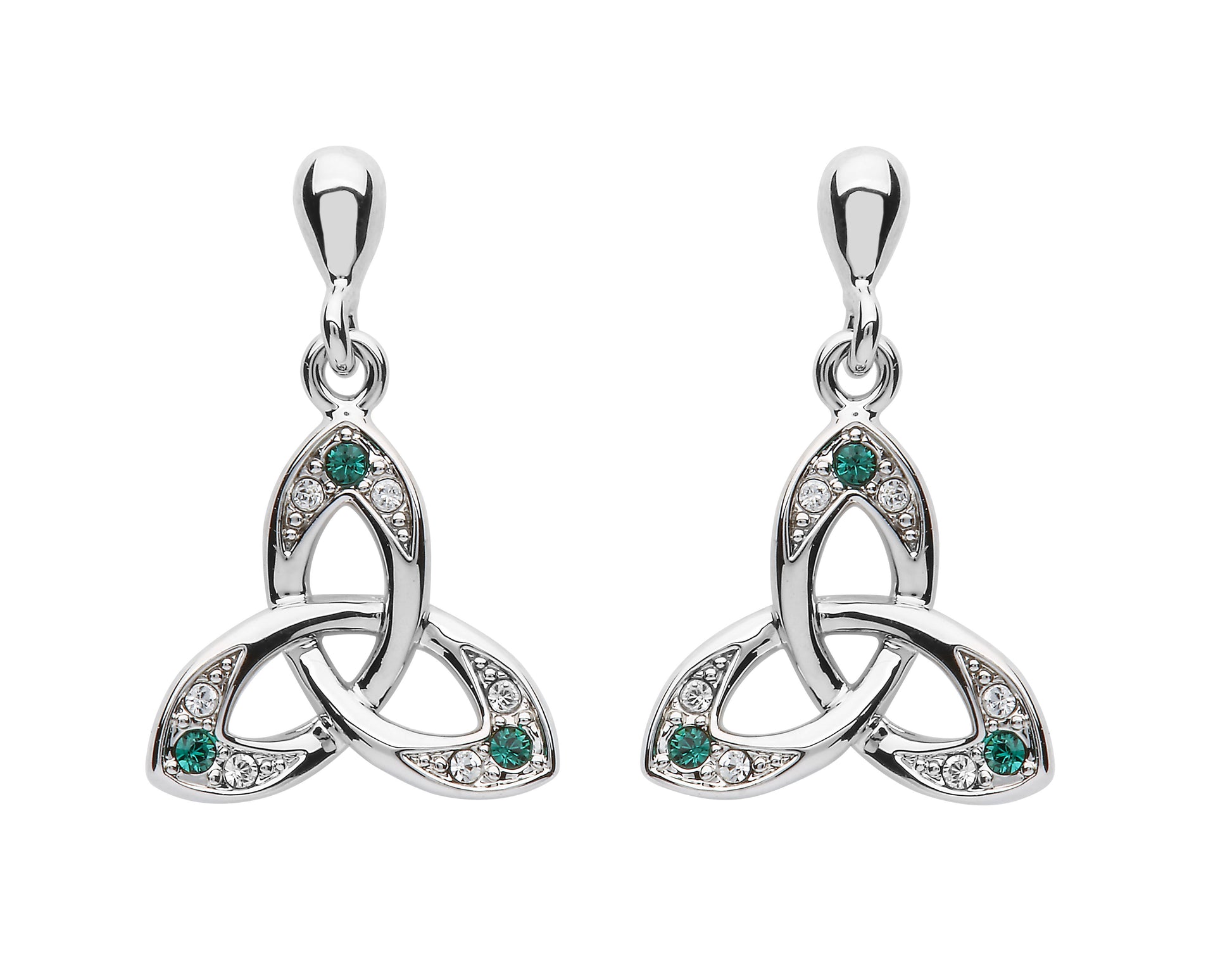 Platinum Plated Trinity Knot Drop Earrings
