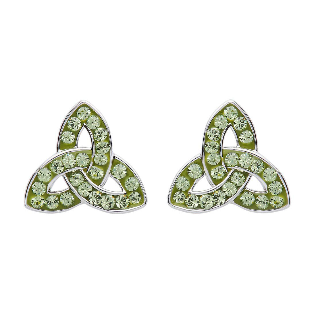 Platinum Plated Trinity Knot Stud Earrings With Peridot Crystals