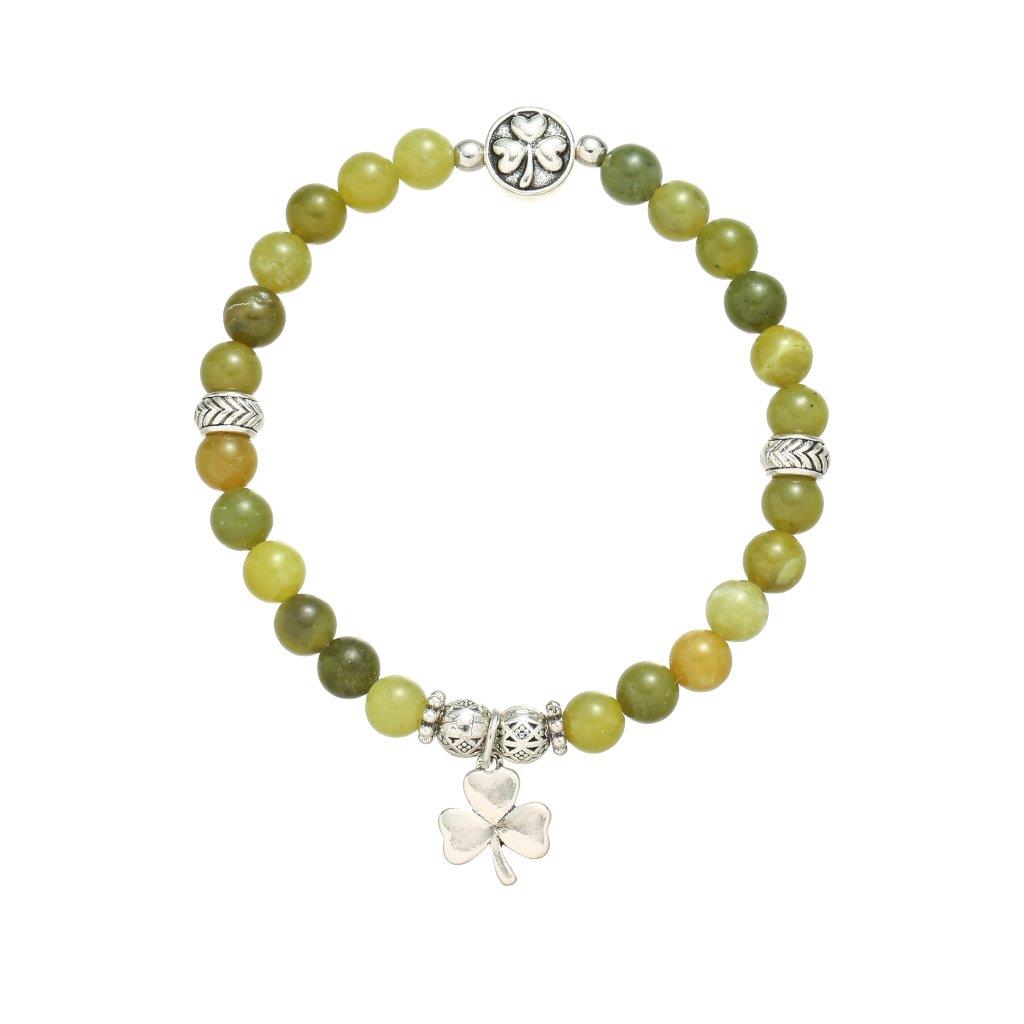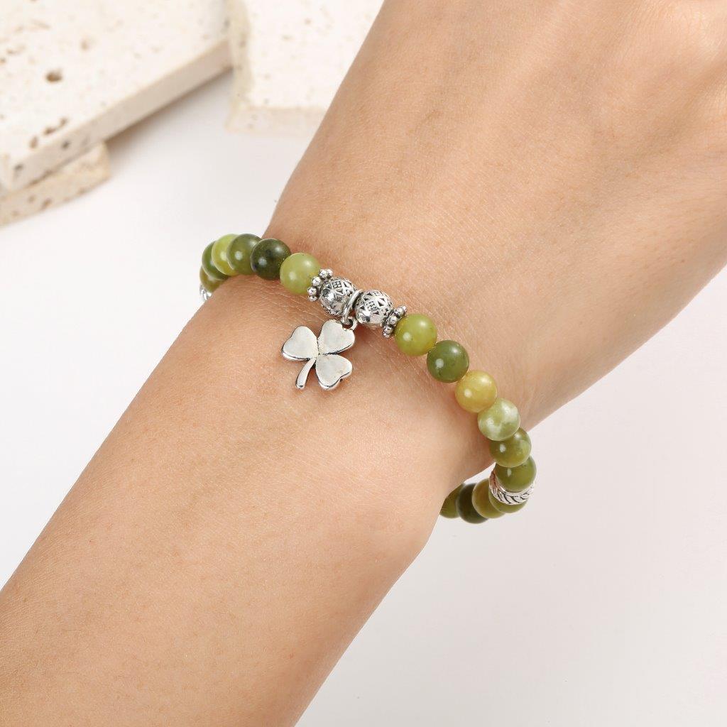 Celebrate Irish charm with this Shamrock Green Marble Stretch Bracelet, featuring a silver-coloured shamrock charm and elegant silver accents nestled among rich green marble beads. A perfect blend of tradition and style.