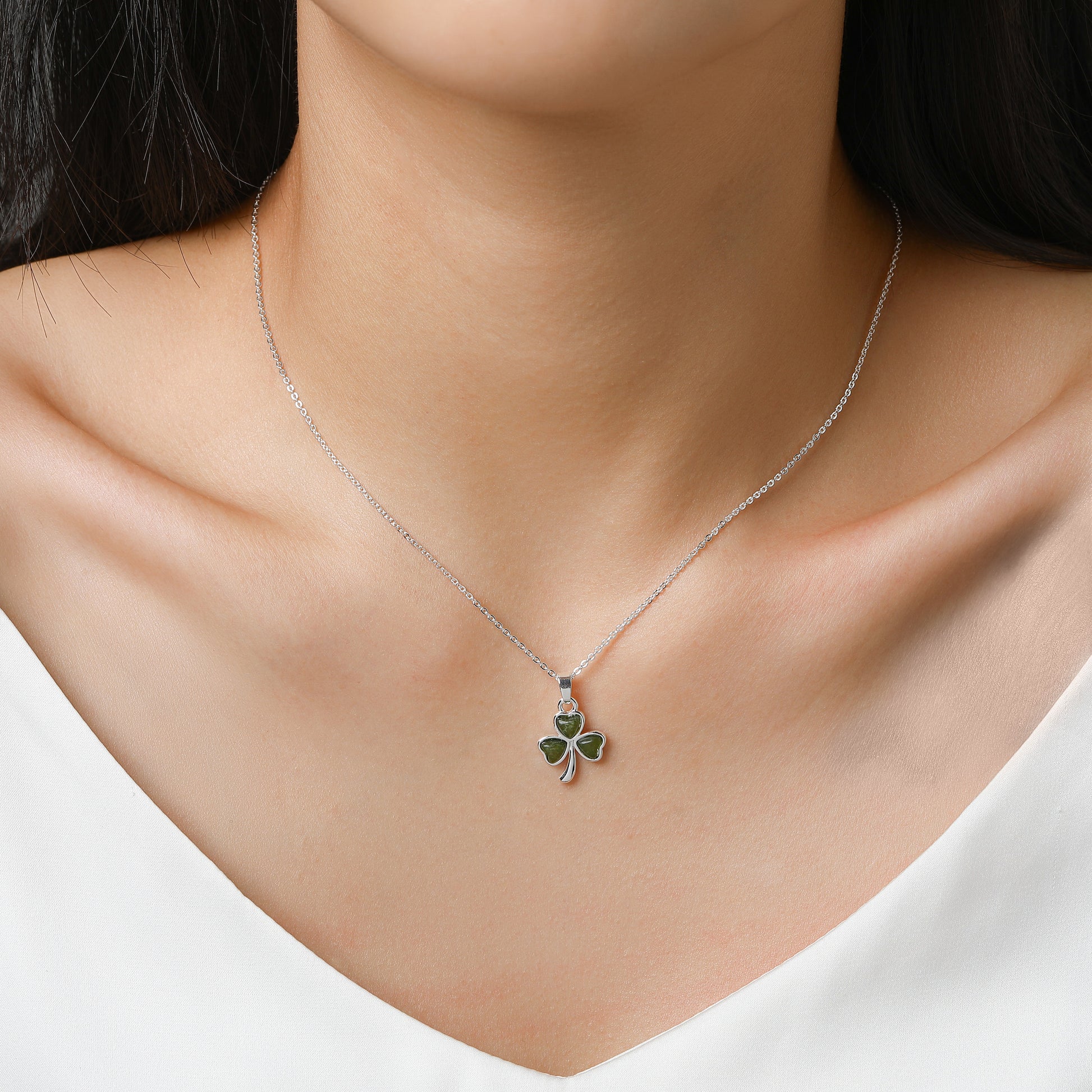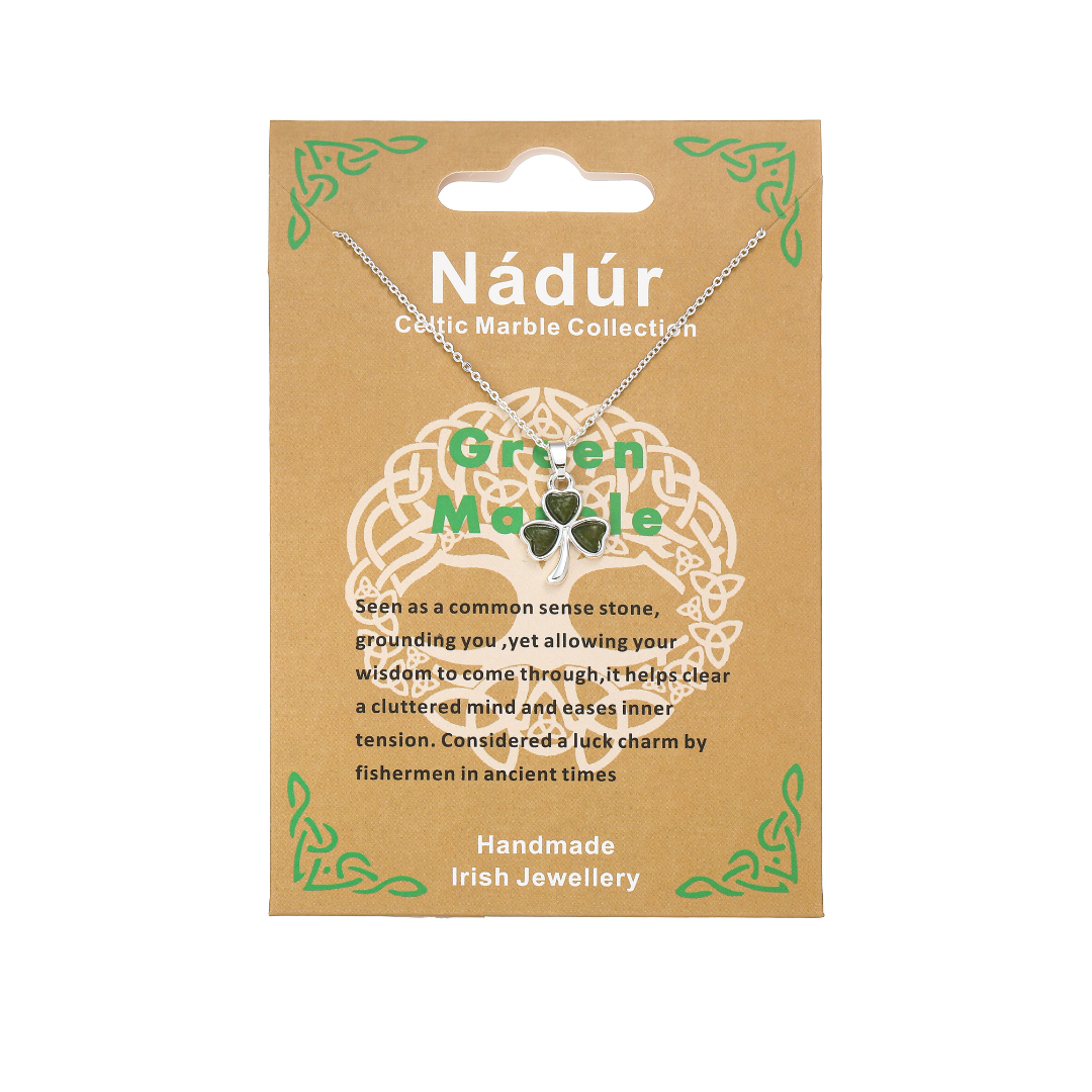 Add a touch of Irish charm to your style with this beautiful Shamrock Inlaid Marble Pendant. Featuring a silver-plated shamrock design, this pendant is inlaid with authentic green Connemara marble, Ireland’s ancient gemstone, renowned for its unique shades of green. This elegant pendant is the perfect accessory for everyday wear or a thoughtful gift from Ireland.