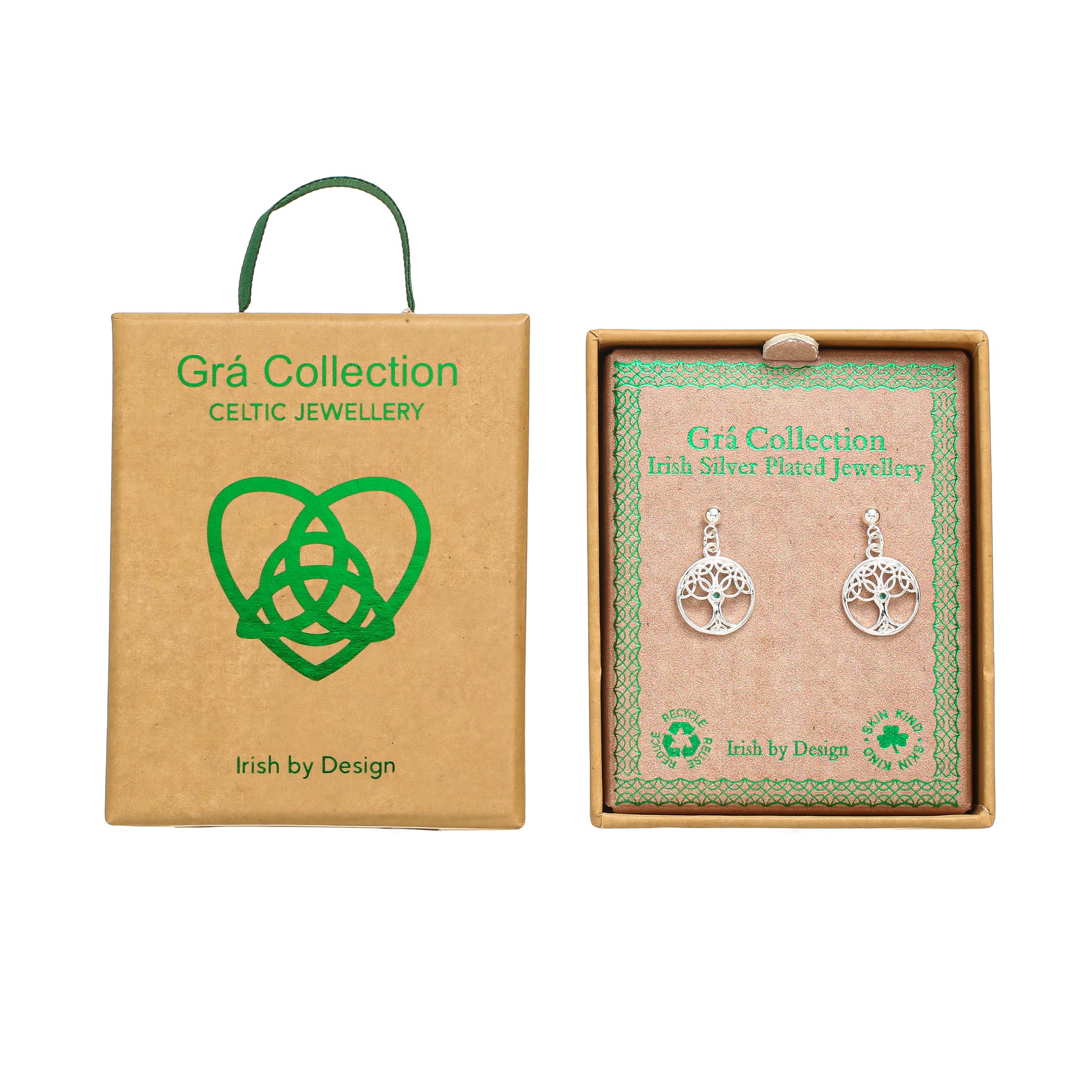 Add a touch of Celtic elegance with these silver-plated Trinity Tree of Life Drop Earrings. Featuring the symbolic Tree of Life entwined with the Trinity Knot, these earrings represent harmony, growth, and interconnectedness, great for meaningful everyday wear or special occasions.