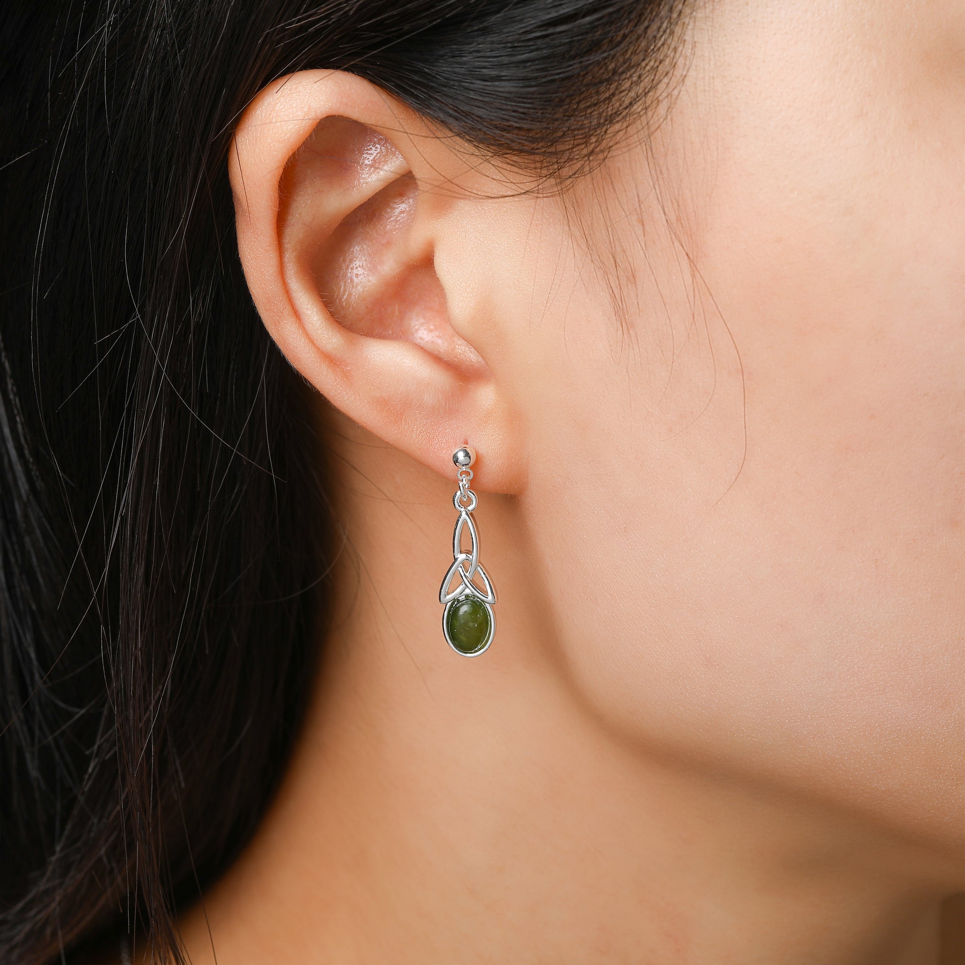 Celebrate your Irish heritage with these elegant Trinity Inlaid Marble Drop Earrings. Each earring features a delicate trinity with an oval green marble. Subtle yet striking, these stud earrings are a timeless addition to any jewelry collection and a perfect Irish gift for someone special.