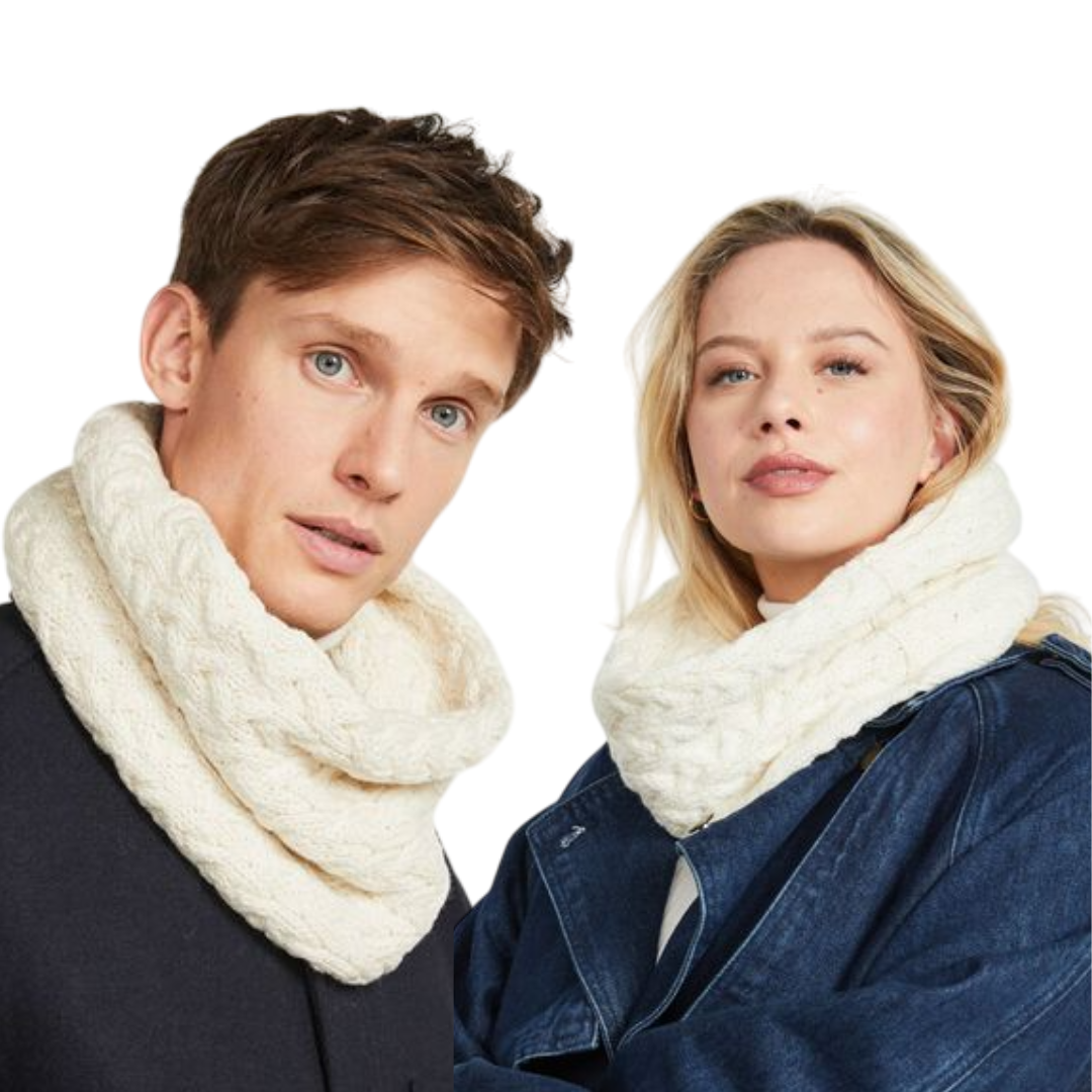 This 100% merino wool super soft snood features beautiful infinity cable patterns to show off your Irish connection. Finely made by the famous Irish brand Aran Woollen Mills this is high-quality and durable. It's perfect for the cold weather and suitable for ladies of all ages.