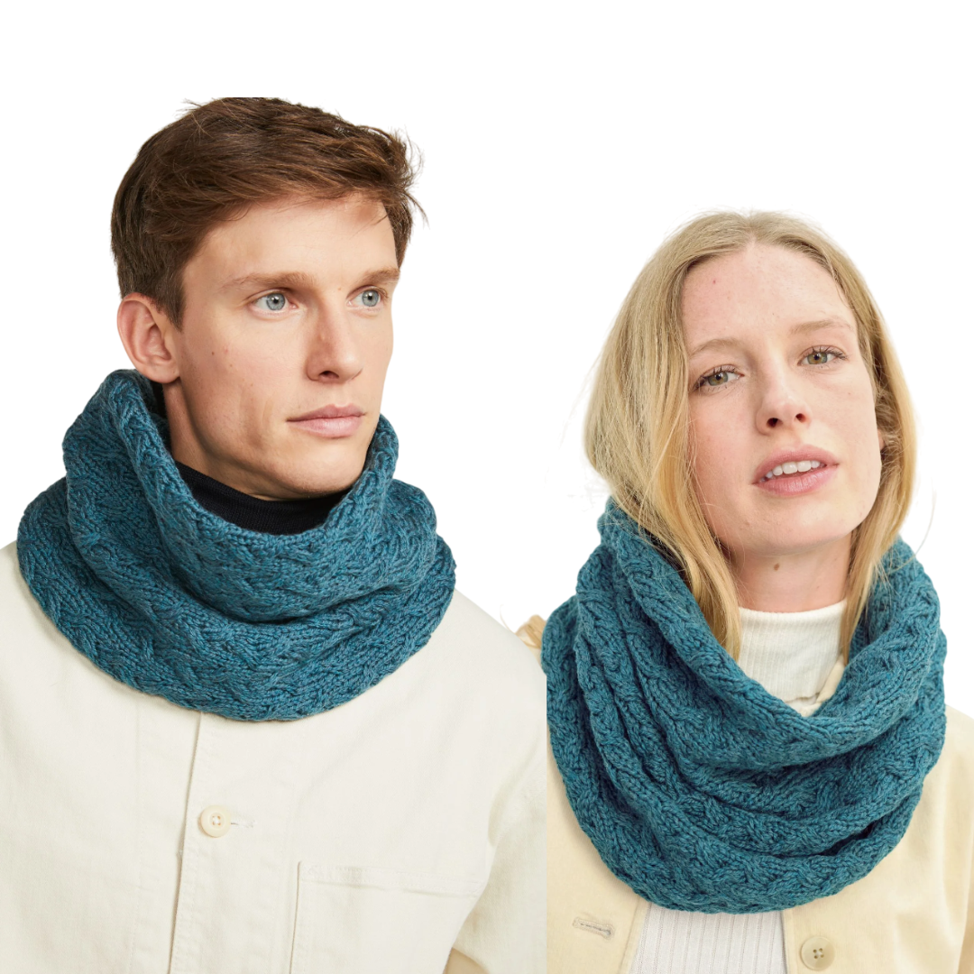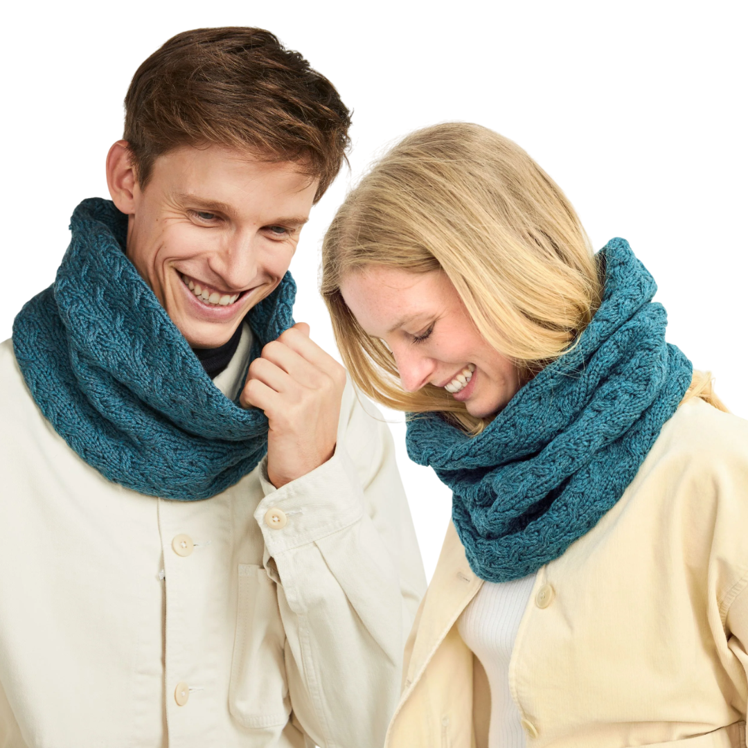 Unisex Merino Wool Infinity Cabled Sea Blue Snood