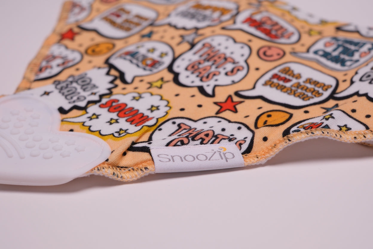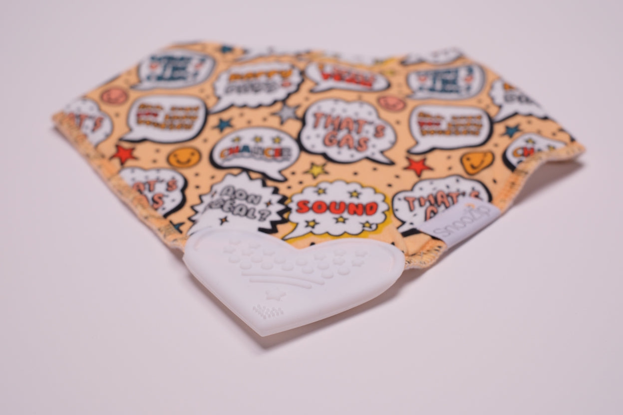 - Material: 100% Organic Cotton Baby Teething Bib with attached BPA-FREE Teether