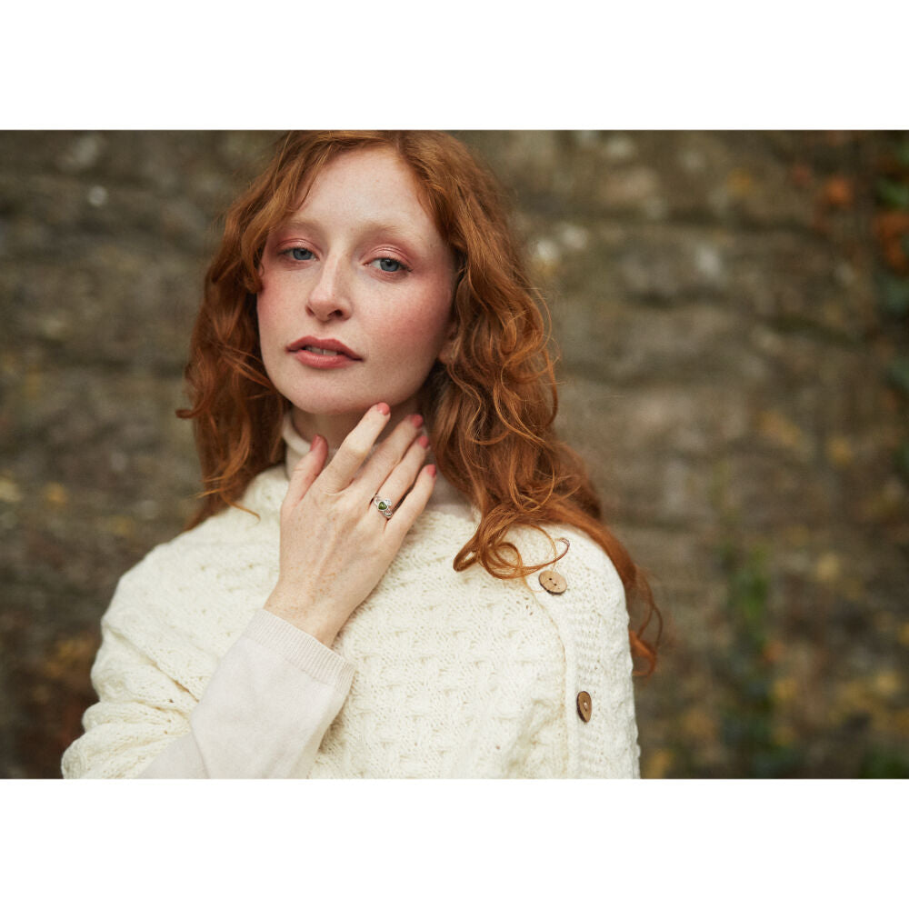 Ladies Hallmarked Sterling Silver Claddagh Ring With Connemara Marble Stone